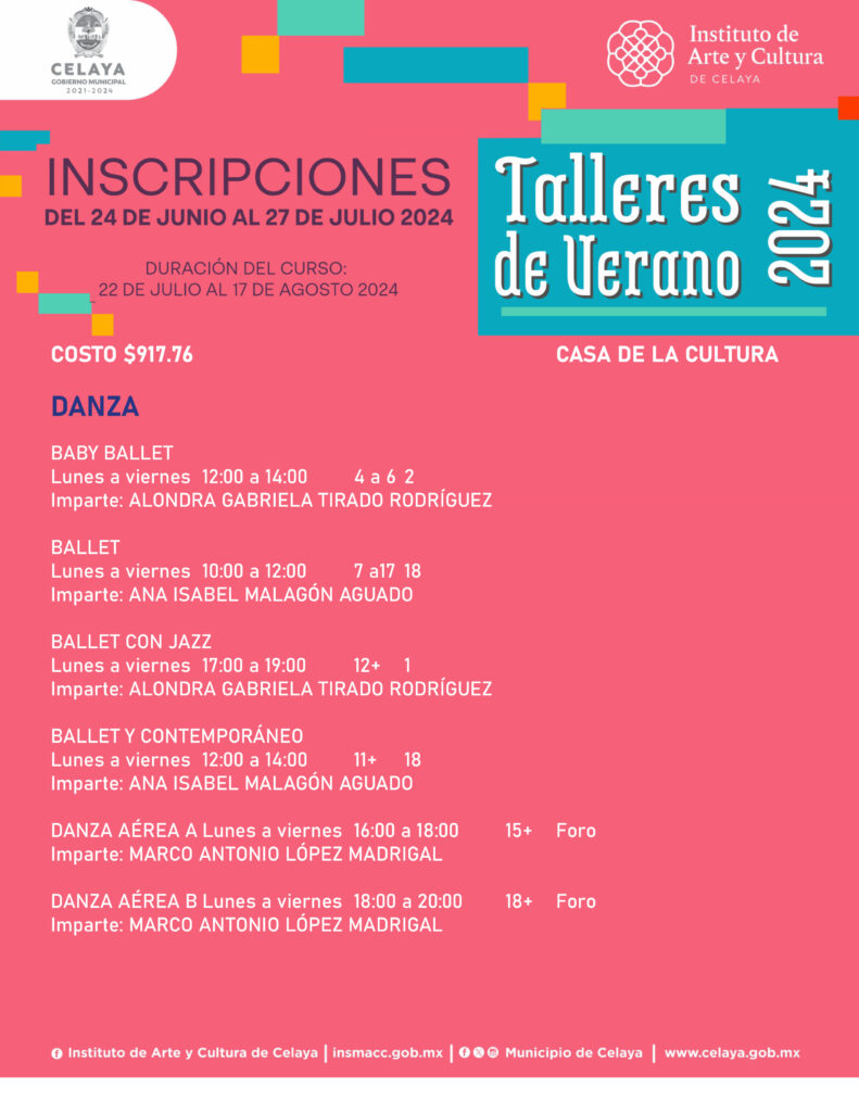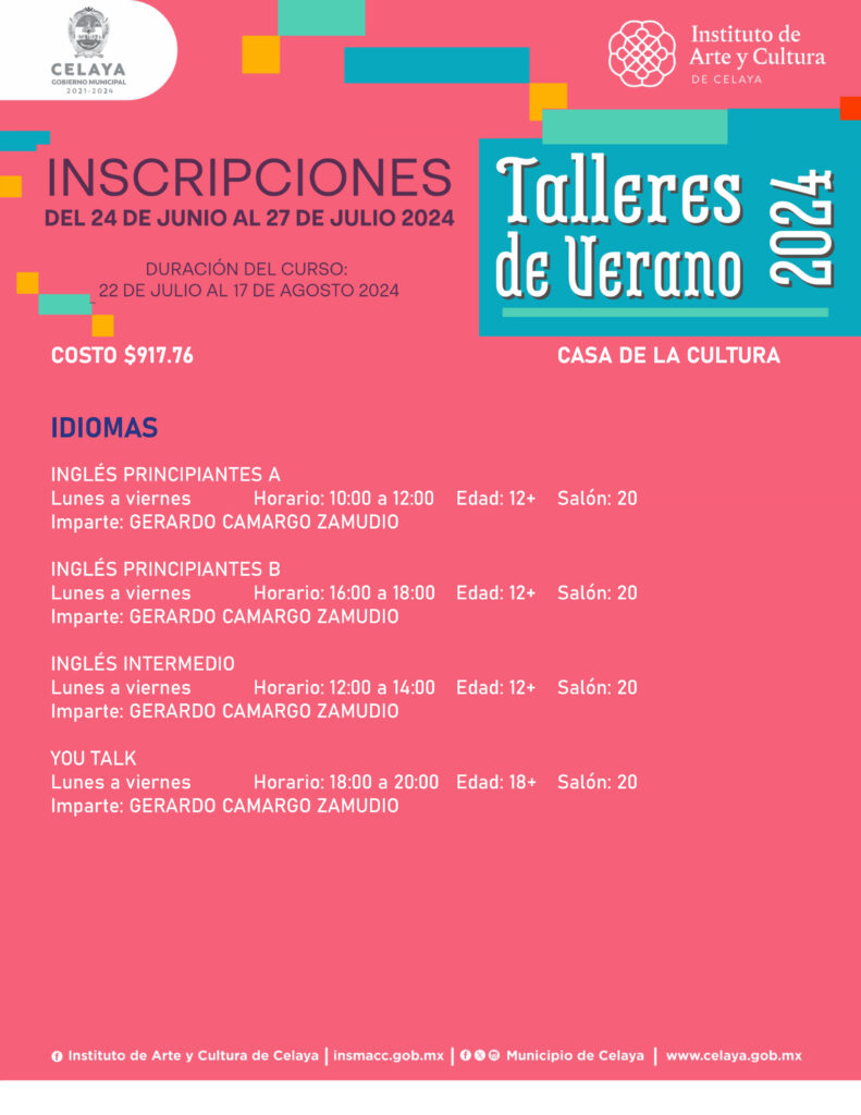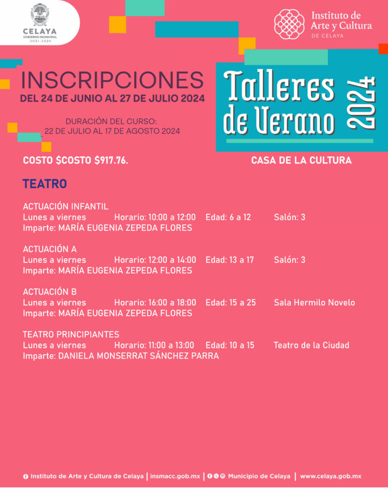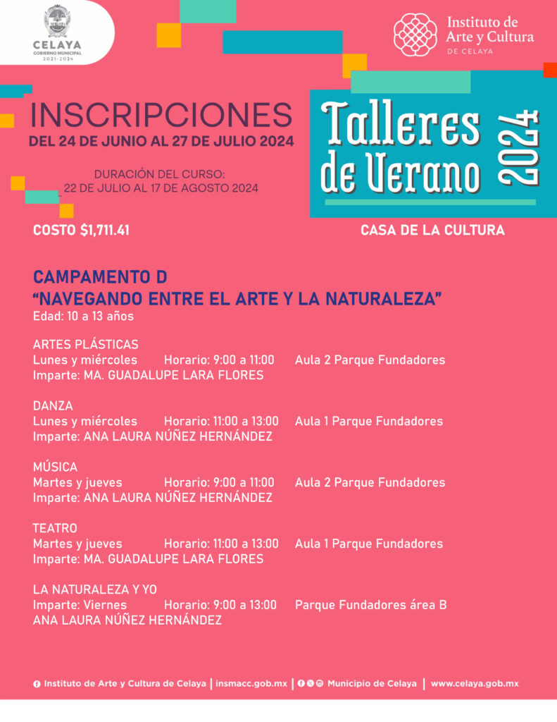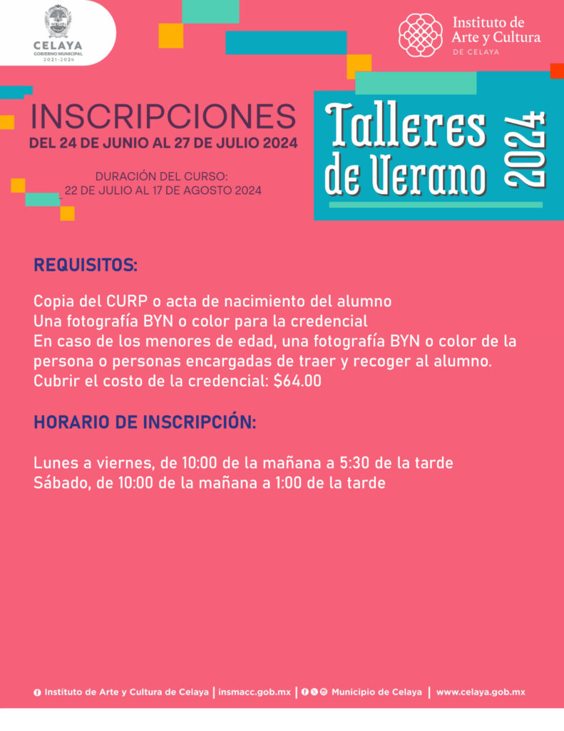 En este verano, tú puedes participar en los talleres que ofrece Casa de la Cultura. El Instituto de Arte y Cultura de Celaya te invita.
