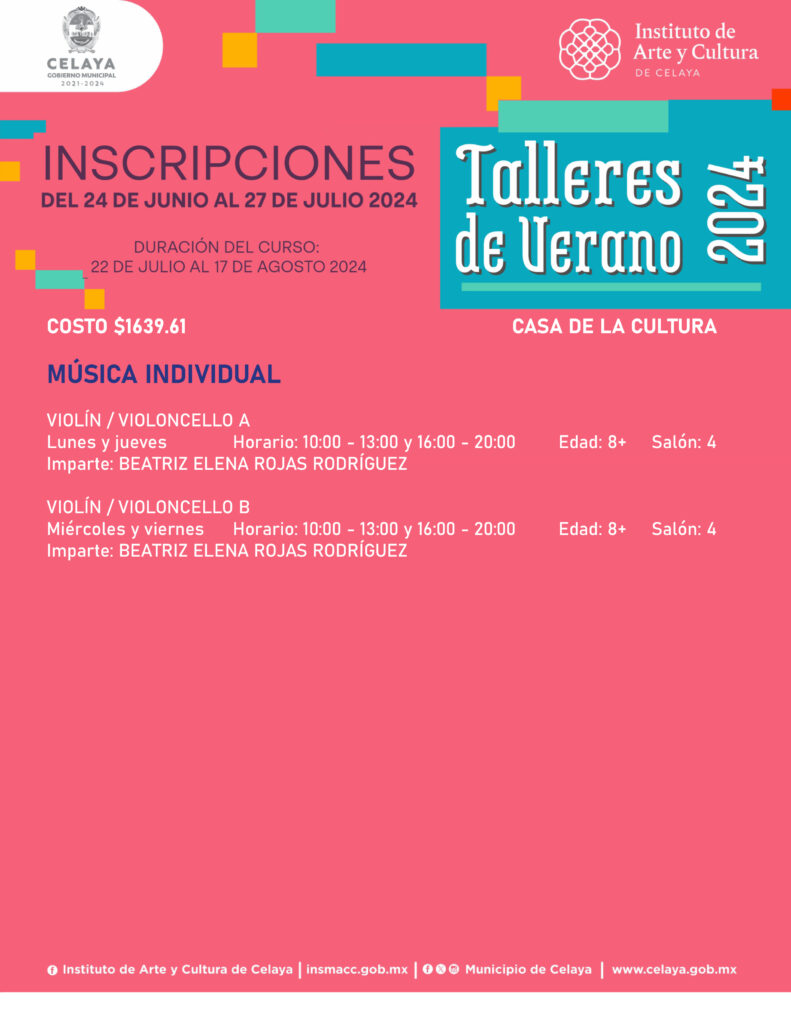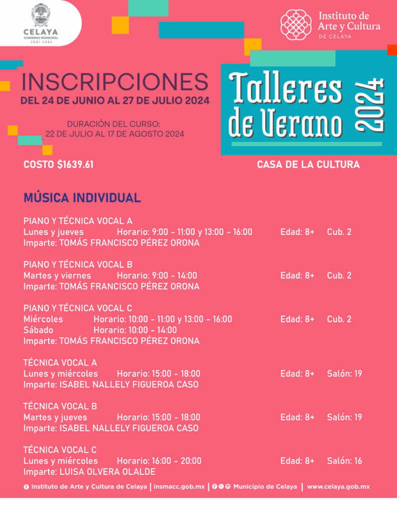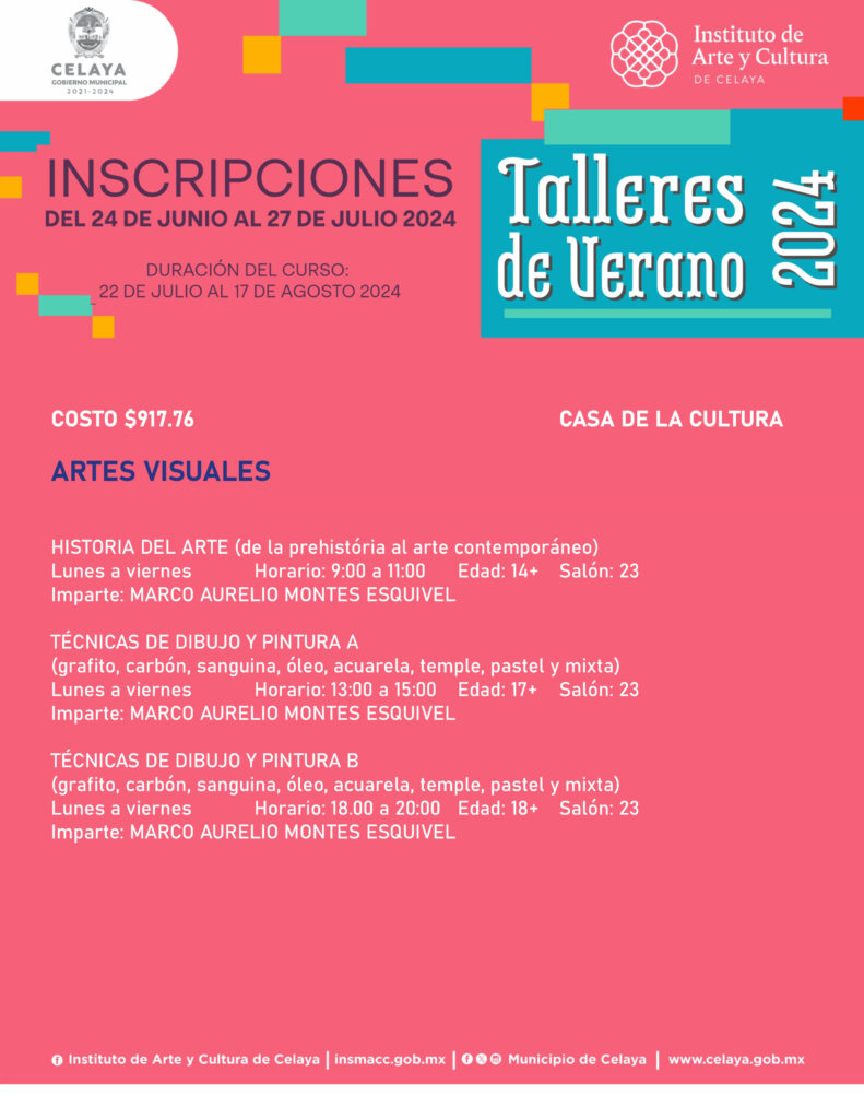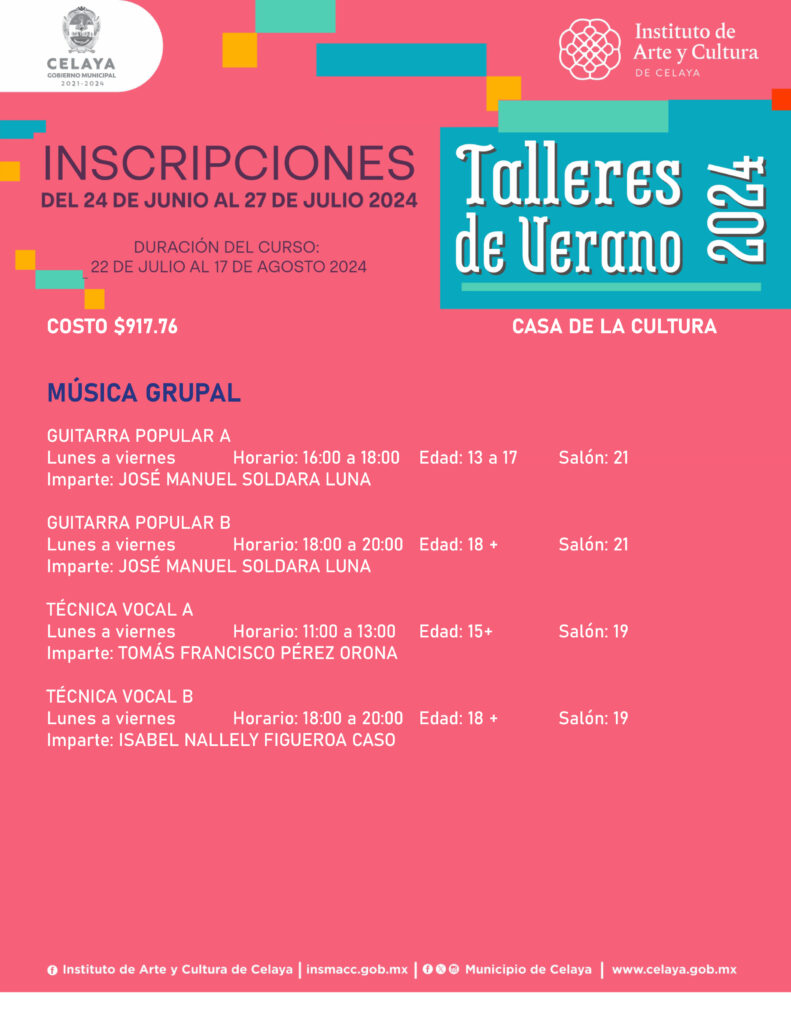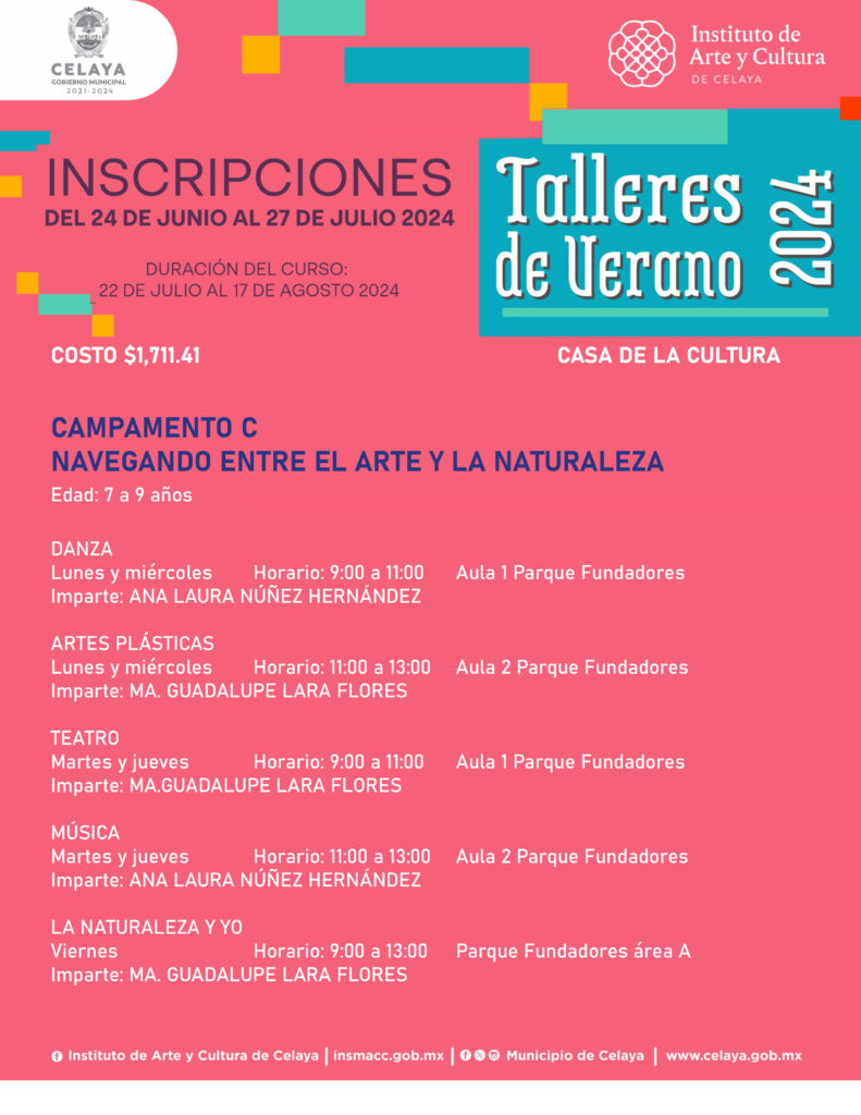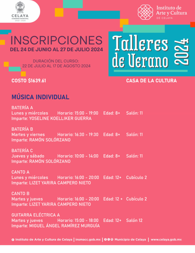 En este verano, tú puedes participar en los talleres que ofrece Casa de la Cultura. El Instituto de Arte y Cultura de Celaya te invita.